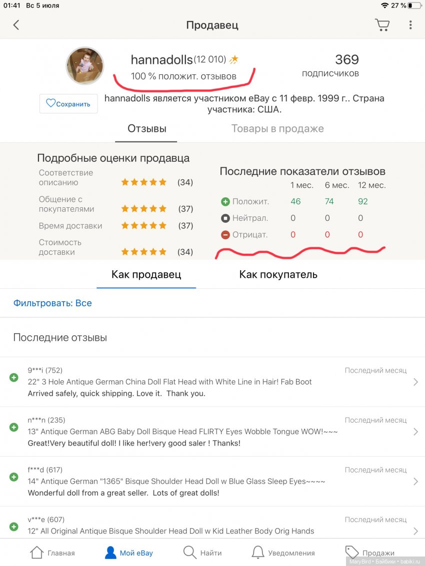 По поводу отзыва. Продавец не кинул Вас, перестав давать обратную связь, он пошел навстречу, предложив возврат куклы с компенсацией расходов, поскольку товар Вас не устроил. Поэтому Ваш отзыв был удален ебей (а не самим продавцом, у них нет такой опции). Вы вполне можете вернуть покупку и забрать деньги. И репутация продавца при этом не должна пострадать. Другое дело, если бы он отказался от любых вариантов возмещений, тогда бы Вы оставили свой отзыв и он бы повлиял на рейтинг этого дилера.