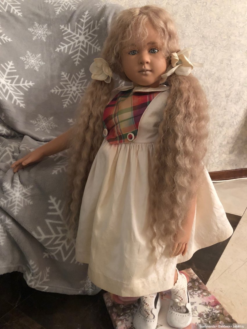 У меня тоже есть большая девочка от Monika Levenig, она 68 см.Так как я люблю больше старинных кукол, была мысль продать её и купить антикварную.Но… не смогла.