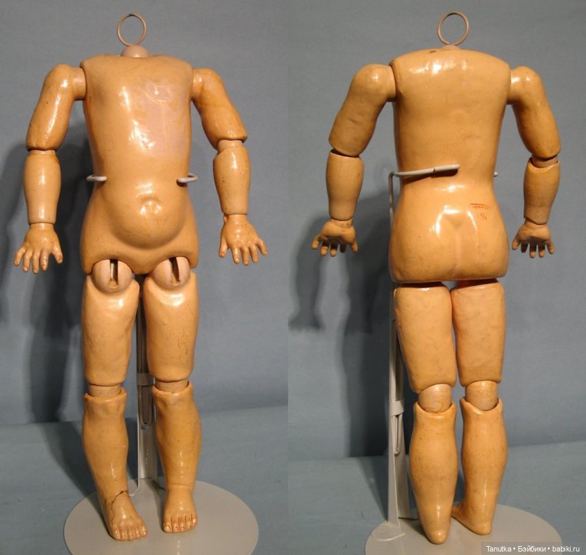 Но вот Кестнер другое дело, у них было собственное производство тел. Тела ранних кукол не маркированы, но имеют вполне узнаваемую конструкцию. Следующее поколение тел тоже вполне узнаваемо и по конструкции, и по качеству, и по штампу на спине. Даже если тело перекрашено и штамп не виден, тело Кестнер у кукол разного размера имеет одну и ту же конструкцию (см. фото в моем комментарии выше).
