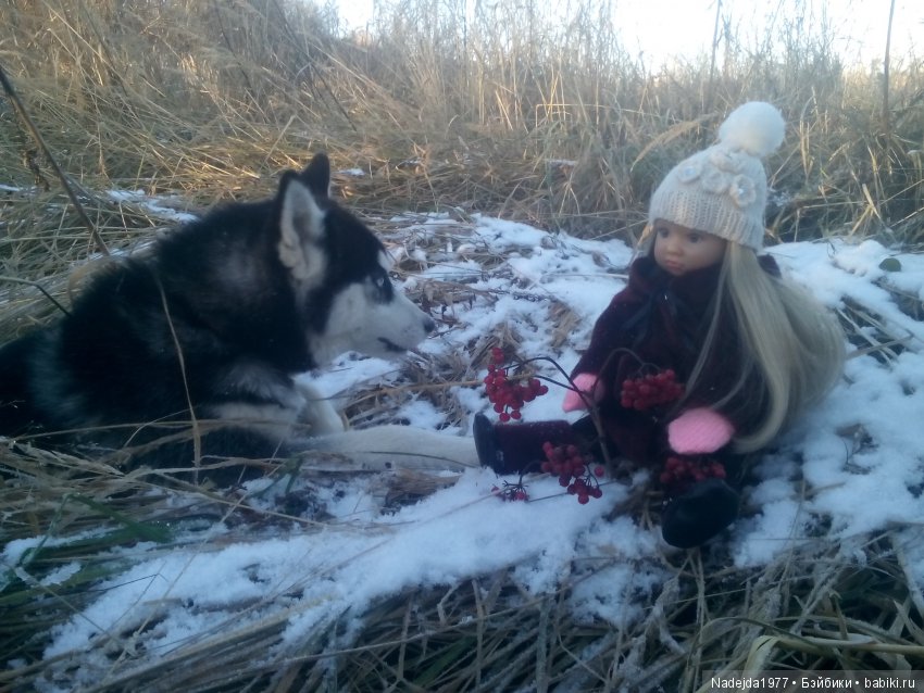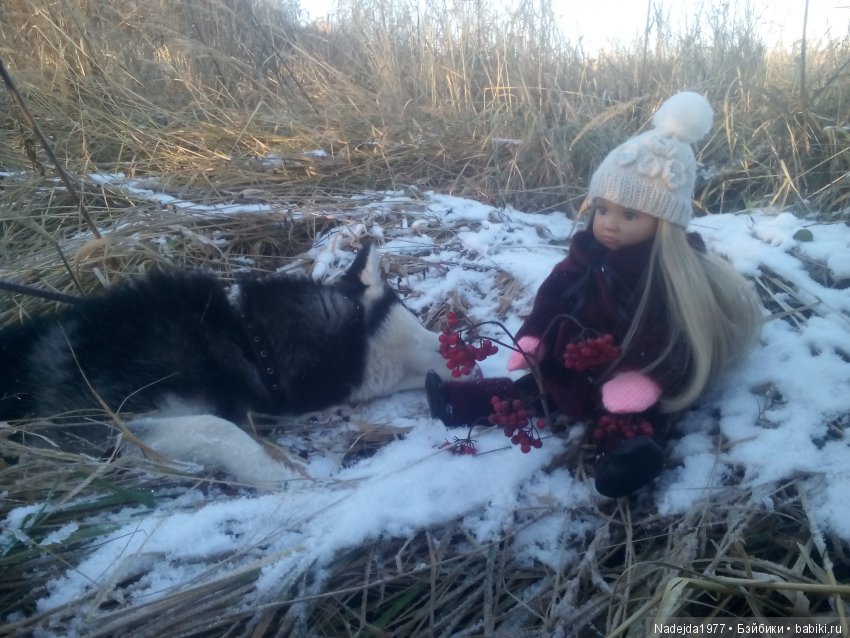 С собакой лучшие кадры! :) А Марейке, кажется снег не понравился, или ей не нравится что его мало :) Скорее всего она недовольна что её так тепло одели :) На зиму Вы её отлично принарядили и тепло и симпатично :), а сейчас ей наверно жарковато :)