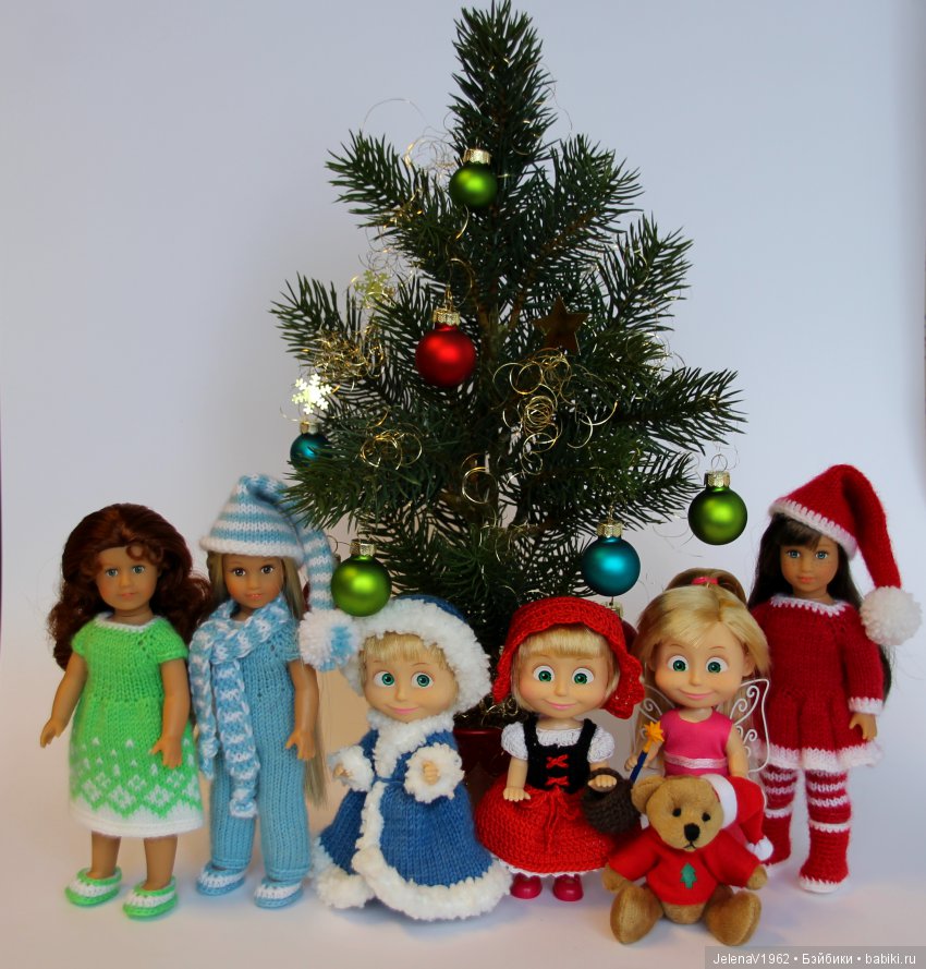 К девочкам поспешили помощники Санты или Деда Мороза, не важно! Главное их теперь уже трое! Это Сонечка, Грейс и Марина! Грейс я связала новое платье, а Сонечке юбочку!