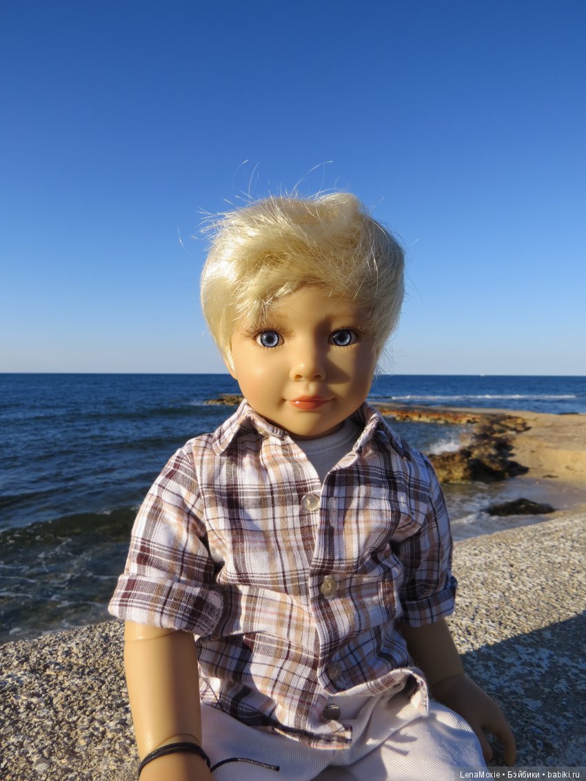 А с париком, увы, у кидзов мало следят за качеством и парички не всегда бывают идеальными. У моего Нико (2016 год) было примерно такое же воронье гнездо (образно выражаясь и не в обиду нашим малышам ни в коем случае) на макушке, думаю, это производители верхнуюю точку так маскируют, пытаясь придать более естественный вид шевелюре. Я немного расправила спицей волосы, чуть пригладив, и все. На затылке у моего Нико парик вообще буграми отстает от головы, как будто он велик кукле, и тоже волнами идут ряды волос, но это заметно только при прощупывании. И также на месте стыка надо лбом торчали нитки от прошивки паричка, я их аккуратно подрезала. Увы, кидзы не идеальны по качеству по многим вопросам, и еще зависит от каждой куклы, как повезет. Но вцелом все куклы очень милые. Привет Вашему Алистеру от моего Нико: