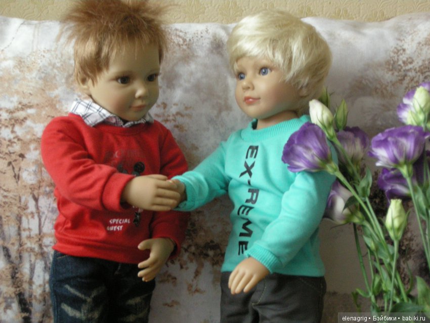Конечно, мне захотелось сравнить мальчиков и также поделиться результатами этого сравнения со всеми вами. Поэтому для топика я решила сделать ребятам пару постановочных фото, будто они знакомятся впервые :-), хотя, конечно, Роберт давно влился в дружную компанию моих кидзов: