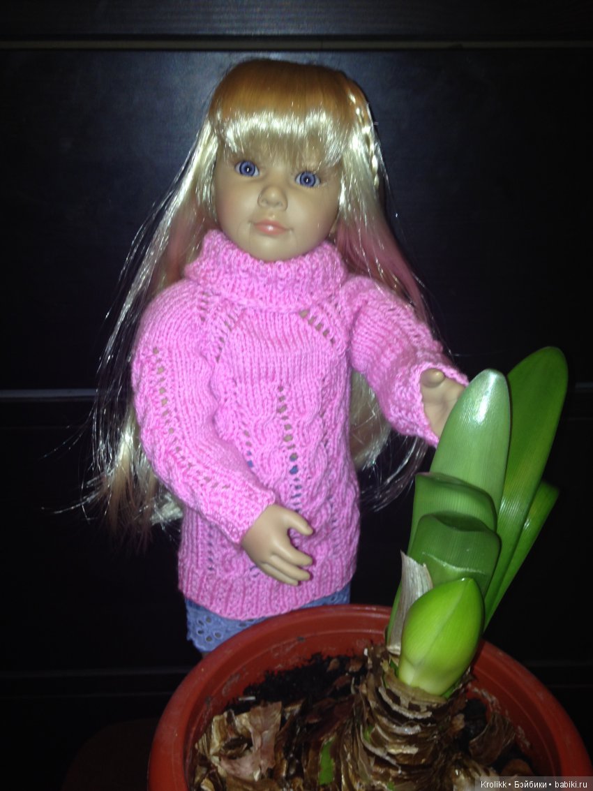 Да, я тоже заметила это совершенно случайно, просто примеряли свитер, который вязали для встречи Снегурочки, а выяснилось, что и для Дженни можно вязать из такой пряжи.