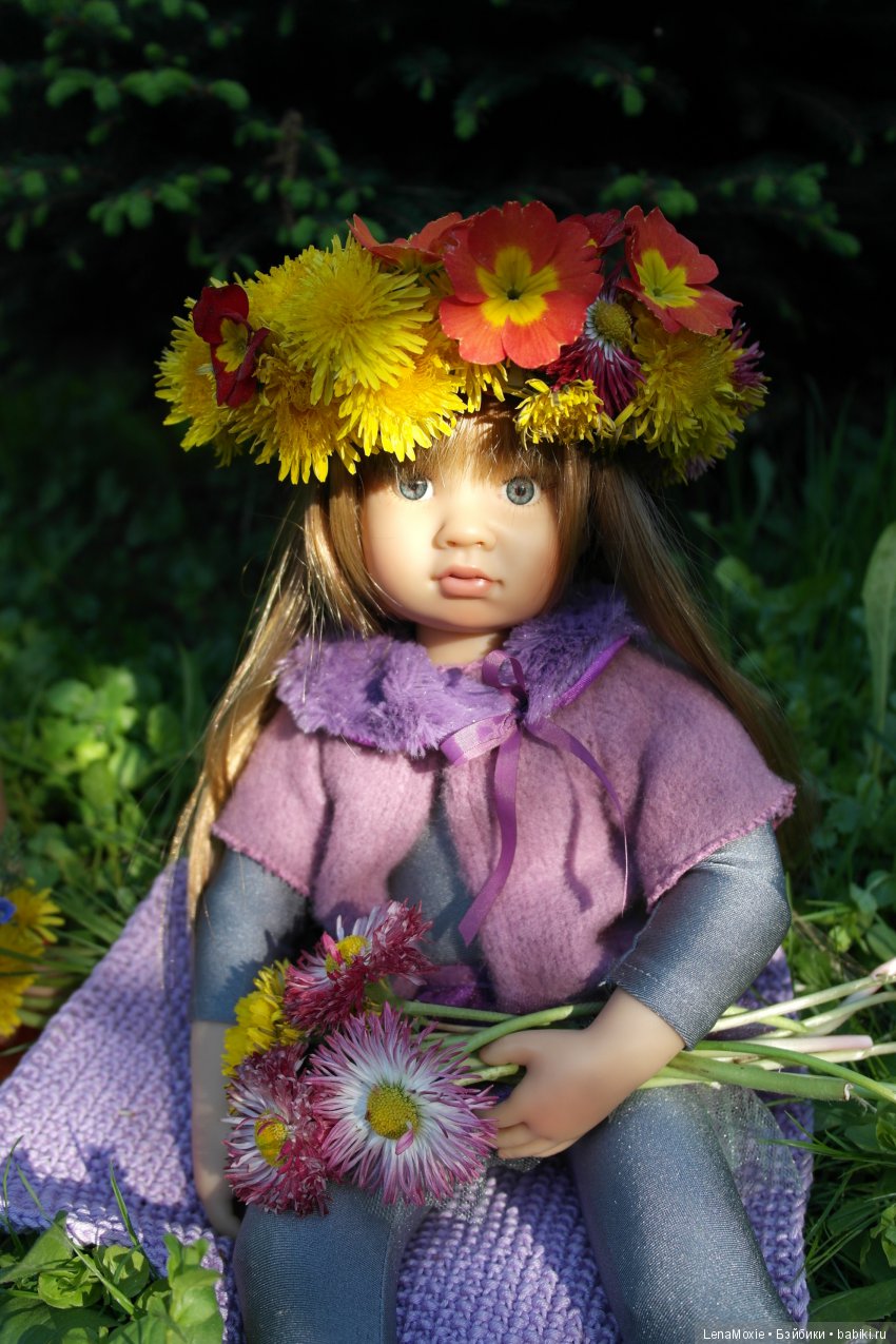 Да, это настоящие цветы: одуванчики, примулы и маргаритки, — для венка выбирала самые маленькие, чтобы они хоть как-то гармонировали с размером кукольних лиц.