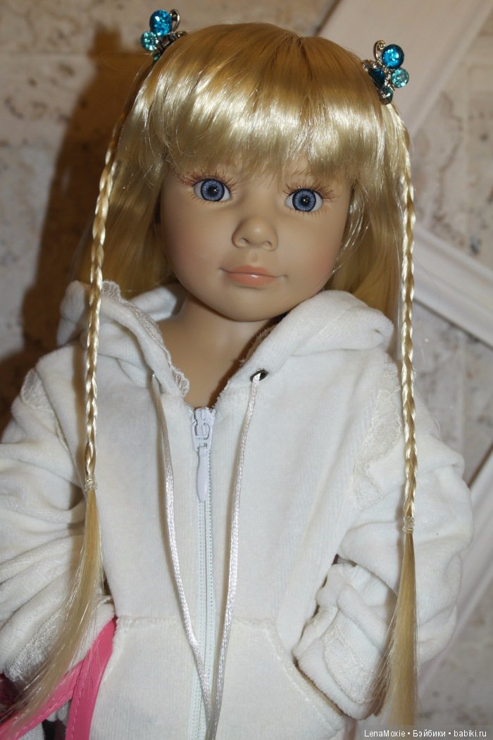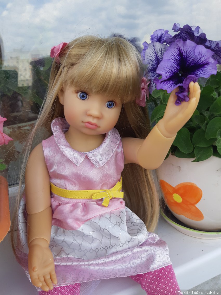 Здравствуйте. Хочу познакомить вас с шарнирной куколкой Kidz'n'Cats Мариной.По моим ощущениям, это такая задорная, веселая девчёнка со вздернутым носиком. Рост у марины 46 см. Живет она у моей мамы, но иногда приезжает ко мне на примерку одежды. Фигурка у марины спортивная, она похожа на плавчиху с развитыми плечами. Шить на Марину приятно и интересно, благодаря тому, что таз уже чем плечи, легко одевать одежду через ноги. Довольна подвижная, 11 точек артикуляции, живая, хорошо держит позы. Винил слегка с сероватым оттенком. Паричок качественный, с красивой пышной челкой. Куколка фотогеничная, может добавить оживления своим не шарнирным подругам при совместном фото.