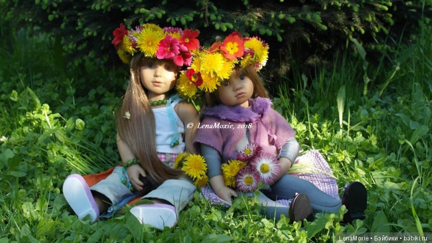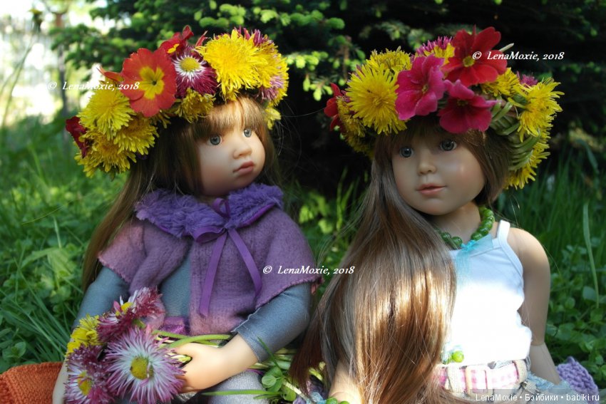 На улице куколки по-другому смотрятся. Любовалась ими! И не только я. Дочки убежали играть на детскую площадку, а я с куклами осталась. Люди как раз с работы возвращались. Место хоть и не проходное, все равно есть люди. Вот они удивлялись! Как я с куклами по асфальту ползаю. Лучше не думать об этом, а то самой странно становится.
