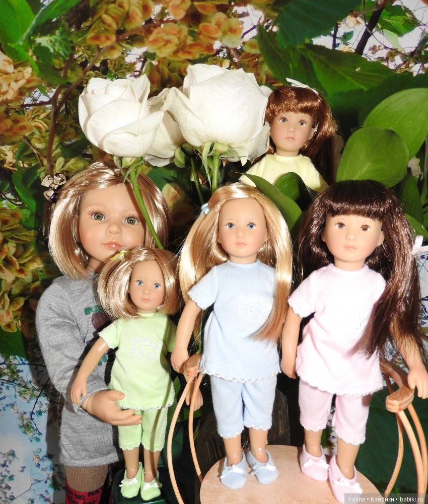 Здравствуйте. Хочу рассказать и показать куколок Kidz'n'Cats из серии minis 21 см. Финхен рыженькая и Гретхен с каре. Есть ещё куколки в этой серии- Ленхен брюнетка, Лоттхен блондинка у меня их нет. Куколки сделаны из плотного винила похожего на фарфор. Глазки в вставные, акриловые с накладными ресничками. Волосы паричок. На шарнирах, 5 точек артикуляции. Тельце тонировано. Это был подарок на 8 марта. Продавались в прозрачной коробке. Одеты были в пижамки. Куколки удобного размера, легко помещаются в сумочку.