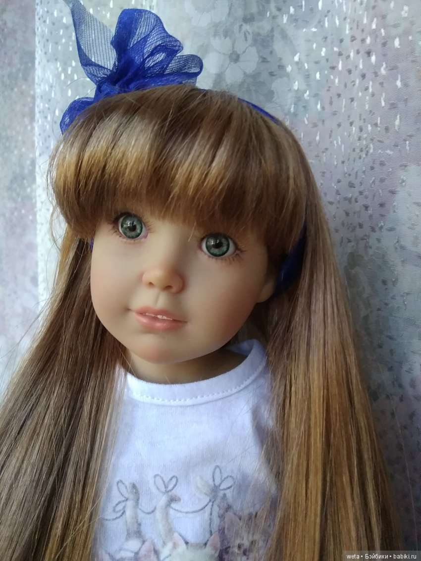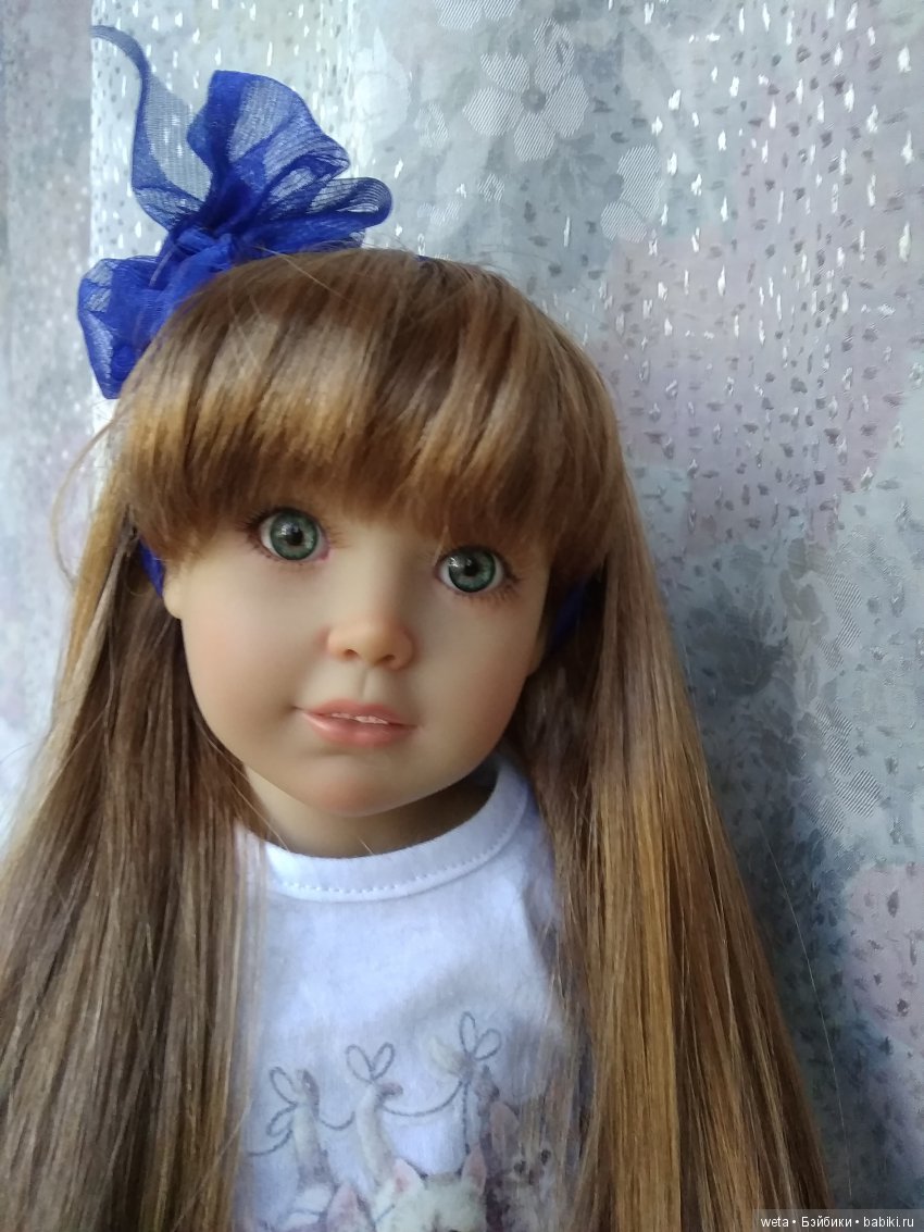 Про «оскал» Галины, разумеется, у каждого свое видение))), у меня вот Эвита — была первой куклой из кидзов, и как раз понравилась тем, что вдруг у современной игровой куклы возродили традиционный германский кукольный молд с зубками. Я тогда не знала, что Эвита относится к линейке кидзов, вообще ничего не знала про них, будучи на старте моего куклохобби, искада себя в этом увлечении, точнее — своих кукол, потому обращала внимание на все, кажущееся мне интересным. Увидев Эвиту, сразу подумала, что она — очень интересный экземпляр, к тому же на мой вкус — красавица, чем-то дающая воспоминания об антикварных куклах, хотя продавец в магазине и уверяла меня, что кукла игровая и более того — никто ее уже год не покупает)). Домой я в тот день поехала вместе с Эвитой. Вот она — мое сокровище: