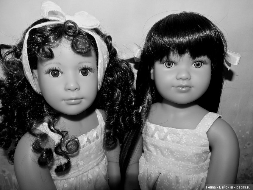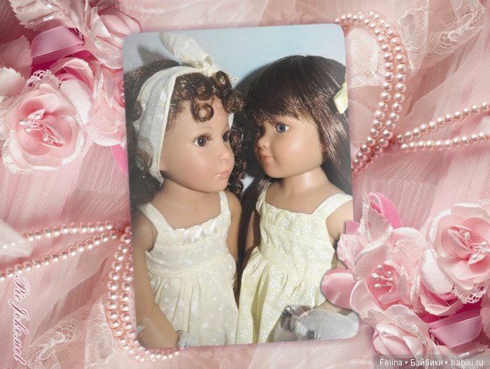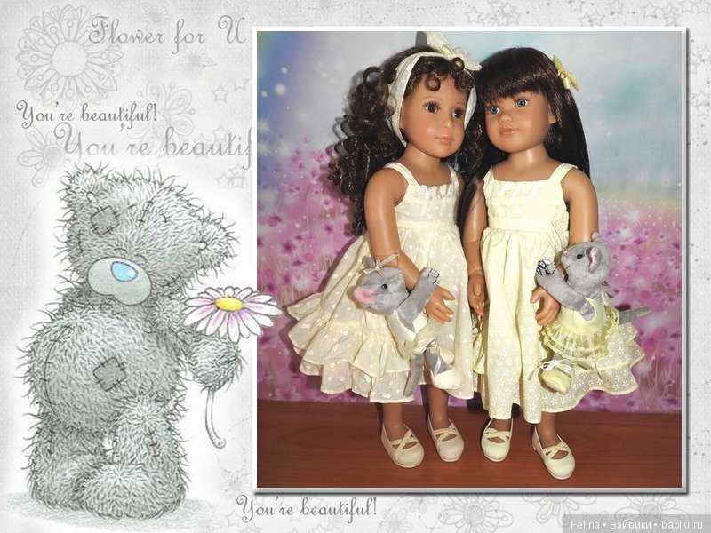 Приглашаю посмотреть и сравнить куколок. Сарафанчики у девочек одного фасона, но разные по качеству. У Лауры сарафан из очень тонкого батиста. И корзинка также. У Лолочки сарафанчик из ткани поплотнее… немного разнятся и котики… Приятного просмотра.