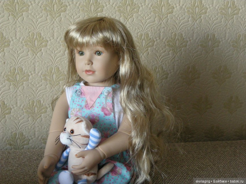 Первое, что обратило на себя мое внимание — это ее волосы — цвета натуральный блонд с эффектом выгоревших на солнце прядей, потрясающе естественные на вид и на ощупь, обладают восхитительной игрой цвета под разным углом освещения! (я очень старалась поймать и передать на фото этот эффект абсолютно живых волос).