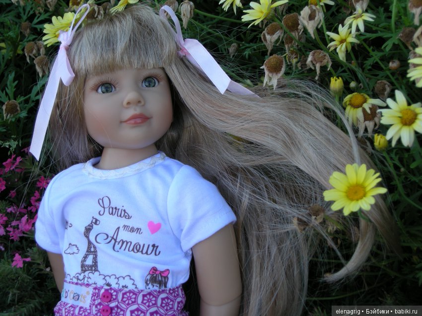 Ника очень рада своему новому имиджу) Она вообще у меня такая девочка покладистая, что ни предложи, ко всему готова адаптироваться) Больше всего она мне нравится в тёмном паричке и в этом, новом — рыжем) Нравится, что волосы длинные, благодаря чему можно завязывать такие вот завитушки по бокам, не прибегая к помощи резиночек и заколочек)