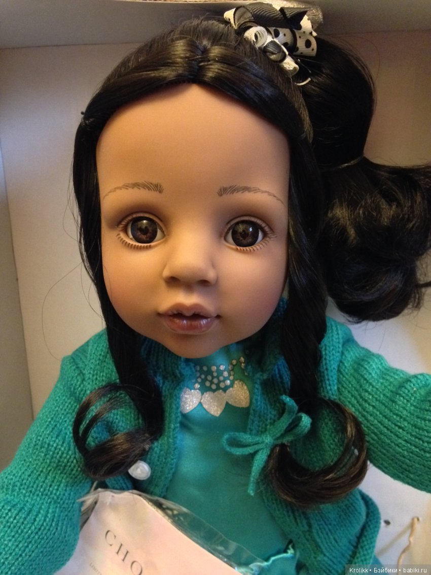 Начали рассматривать внимательно куклу и с удивлением обнаружилось, что приехала совсем другая Сабина. Меньше ростом почти на 1 см. С более темным винилом, огромными глазами и другими ресницами… Но при этом имелся так же котик и цветочки…