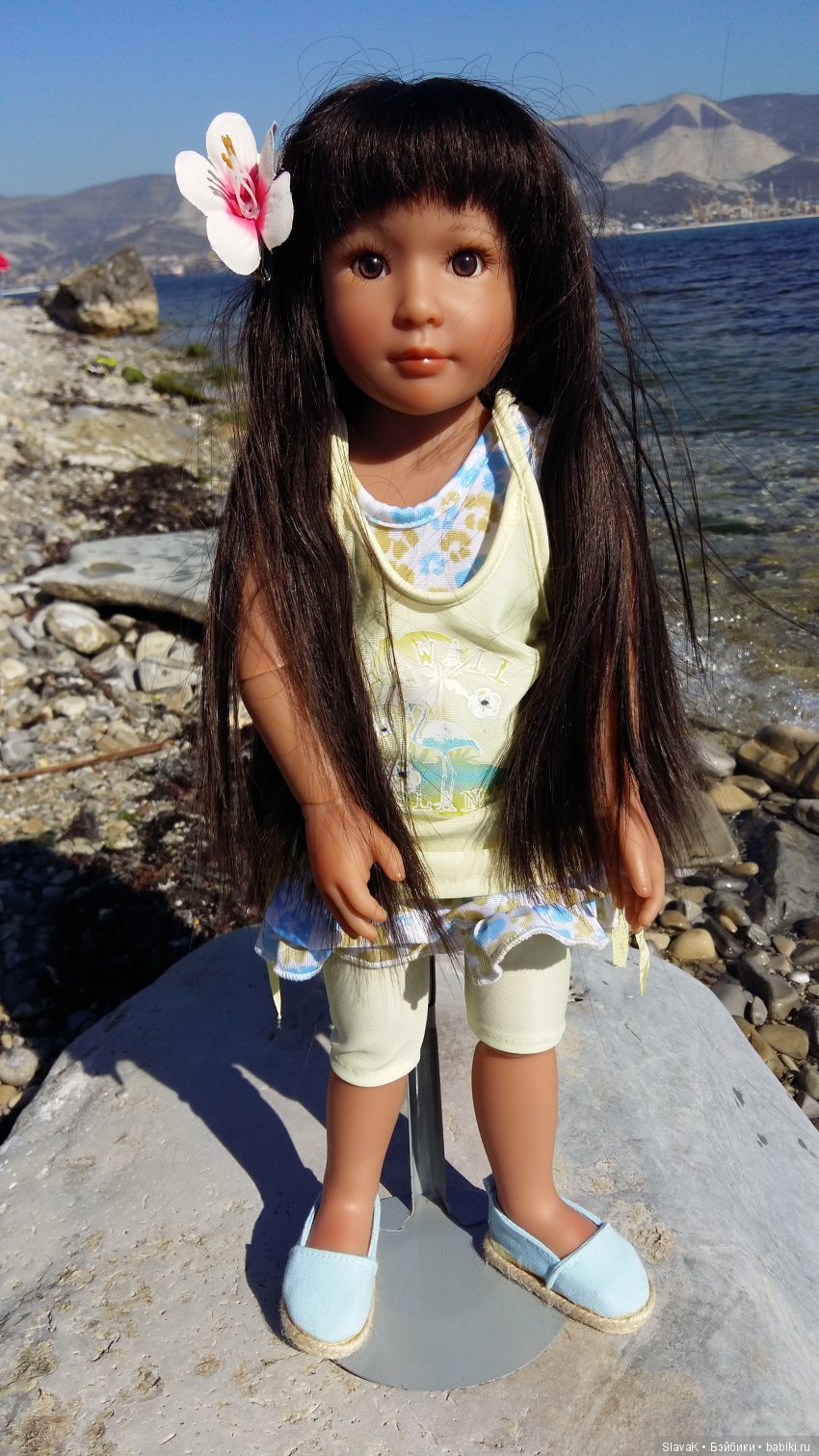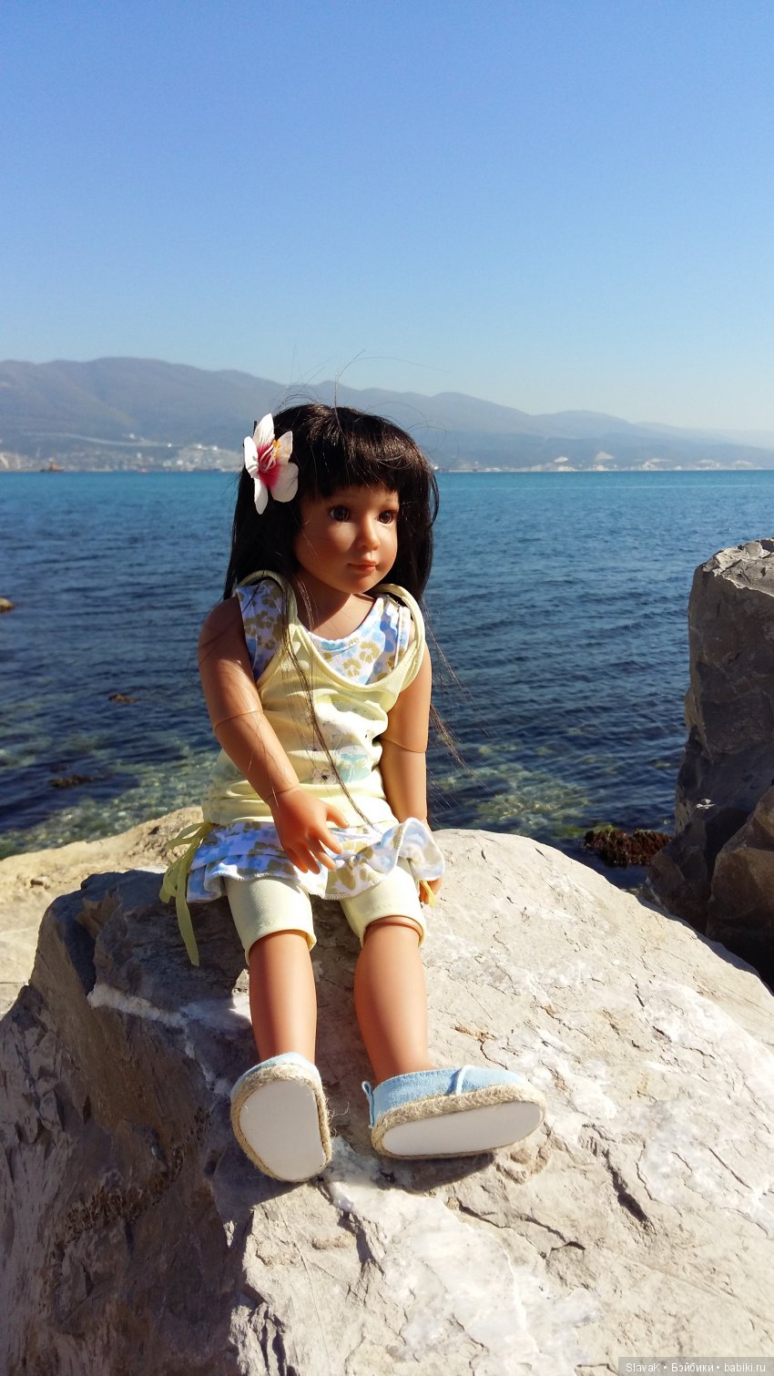 На этой неделе я гуляла с куколками Ровен и Норой. Но к ним в кампанию прихватила так же и Кики. Она у меня тропиканка Очень уж ребенок тосковал по солнышку, морю и горячим камням. Отказать ей в последних почти летних лучах солнышка я никак не могла.
