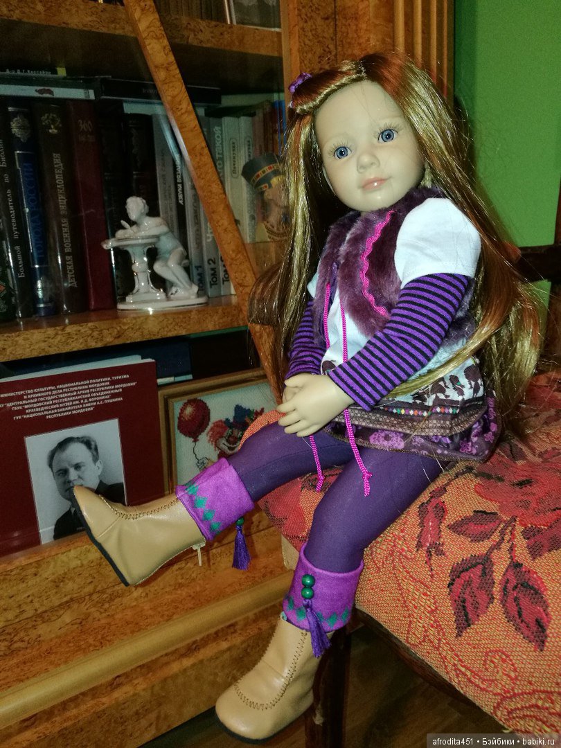 Первое, что сделала Юлика, выйдя из коробки — поразила меня нереальной синевой своих глаз. Таких глаз я ещё ни у кого из Kidz’n’Cats не видела. Даже лучезарно—голубые глаза Марины проигрывают глубокой синеве глаз Юлики. И эти синие глаза в сочетании с каштаново—рыжеватыми как бы мелированными волосами, многослойным аутфитом в сиреневых тонах, делают эту девочку неотразимо прекрасной. Маленькая волшебная фея из далекой северной страны :)