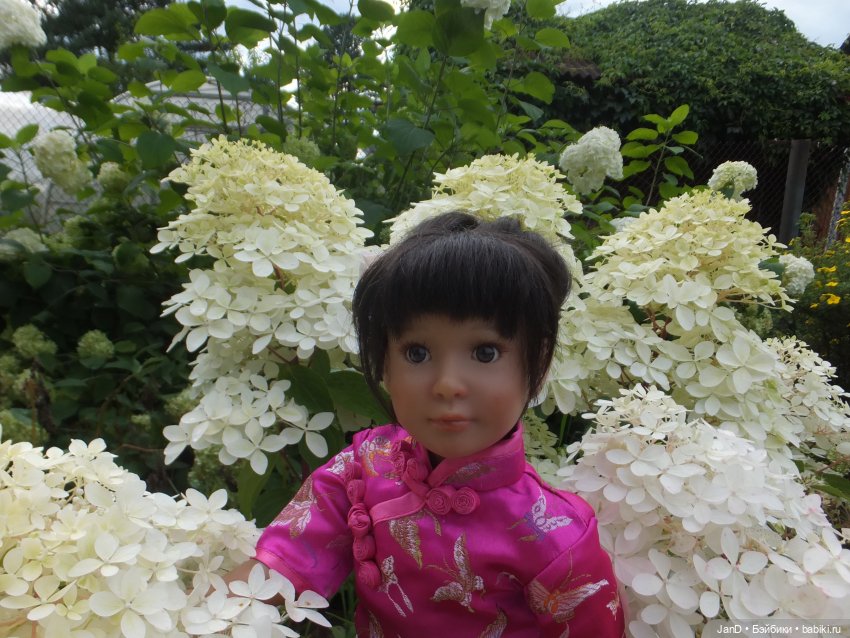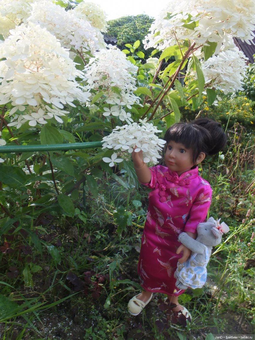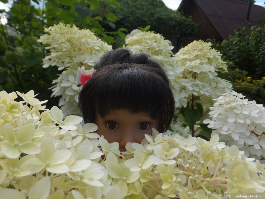 Всем доброго времени суток! Прошлой осенью посадили небольшой кустик гортензии Фантом, которая радует нас красивейшими метёльчатыми соцветиями! А насладиться цветами и прогулкой отправилась чудесная Кики! Приглашаем Вас на прогулку с Кики по летнему саду! Спасибо всем за внимание!