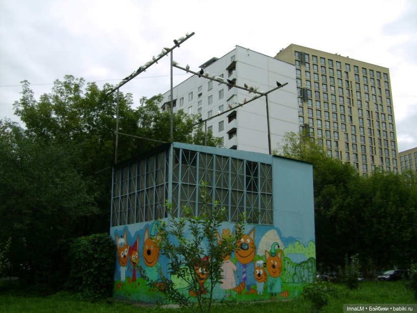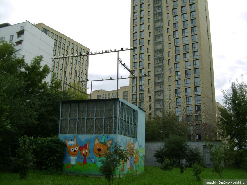 Мне показалось странным, что на голубятне нарисовали кошек — которые, как ни крути, враги птиц и охотятся на них. Но если эти кошки — персонажи мультфильма, то они воспринимаются уже по-другому.