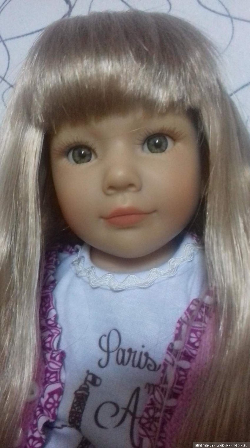 В итоге мы поменяли паричок, сменили голубые глазки на зеленые и чуть приподняли головку. Еще перерисовали губки. Подбородочек до этого у нее был плоский, а не округлый, как у других моих кидзиков, а щеки как бы выдавались вперед. От этого лицо в нижней части было шире, чем в верхней. Будто винил немного просел и щеки расплылись. Я аккуратно нагрела головку феном и массирующими движениями приподняла ее за щечки, подержав так пока он не остынет. В итоге, все встало на свои места. Еще раз спасибо Татьяне за обеих малышек, они прекрасны!