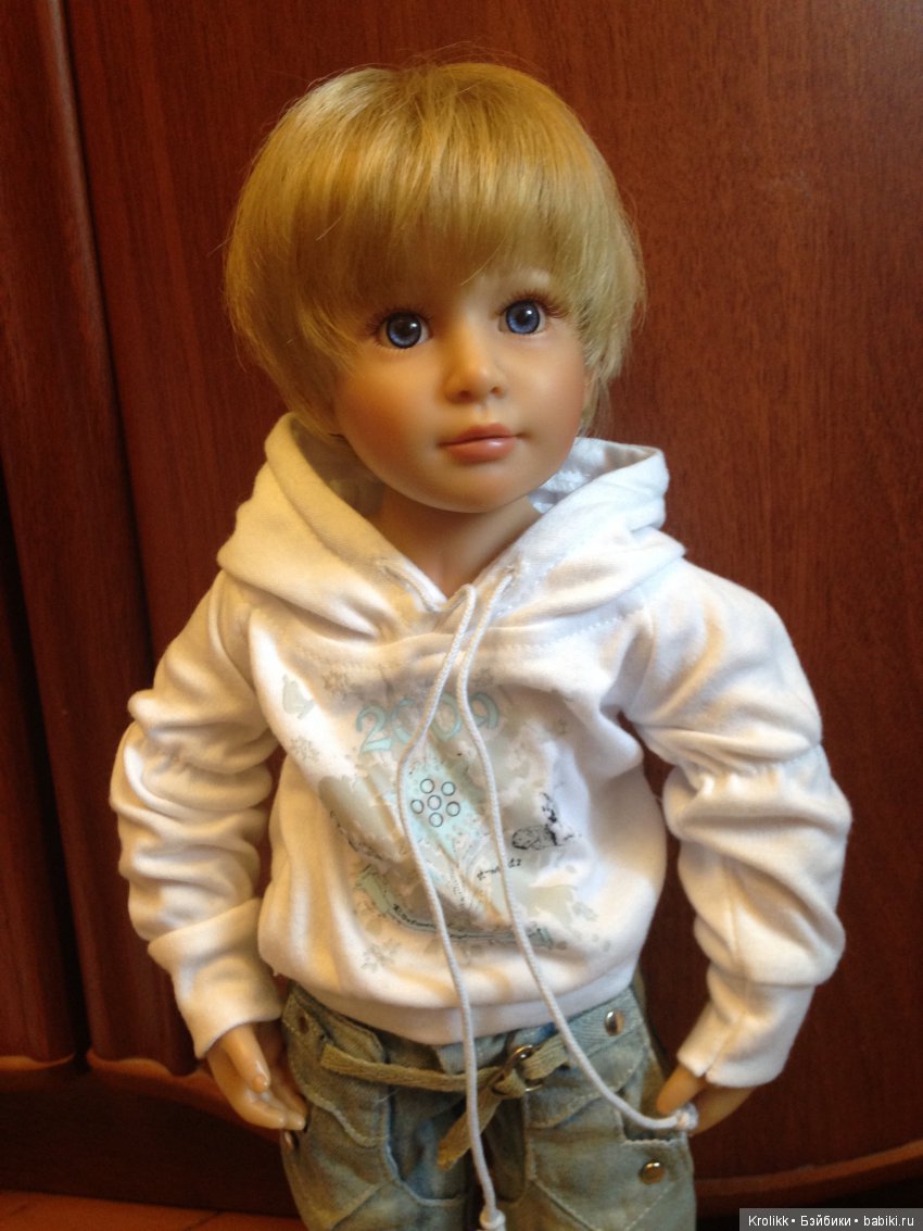 И я вам кое-что поведаю об этих именах) Почему Серёжа, почему Игорь?) Дело в том, что как только я увидела мальчишек, вживую)), то сразу вспомнила о том, что мой брат в детстве был блондином, почти блондином)), а глаза у него карие. Зовут его Сергей) Вот вам подсказка в моём выборе имени для Якоба. Глянув на Бобо, я тут же продолжила родственную линию)) Мой племянник, младший сын моего брата — голубоглазый блондин, в детстве)) Это только теперь, став взрослым дяденькой, он перестал быть блондином, но глаза-то всё равно голубые)) Вот вам и вторая подсказка) Как-то сразу так в мыслях обрисовалось и имена были выбраны по этим ассоциациям. Напомнили мне кукло-мальчики реальных людей))