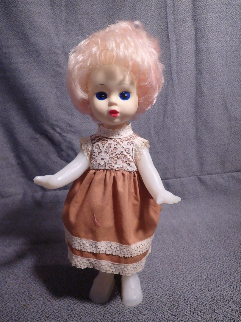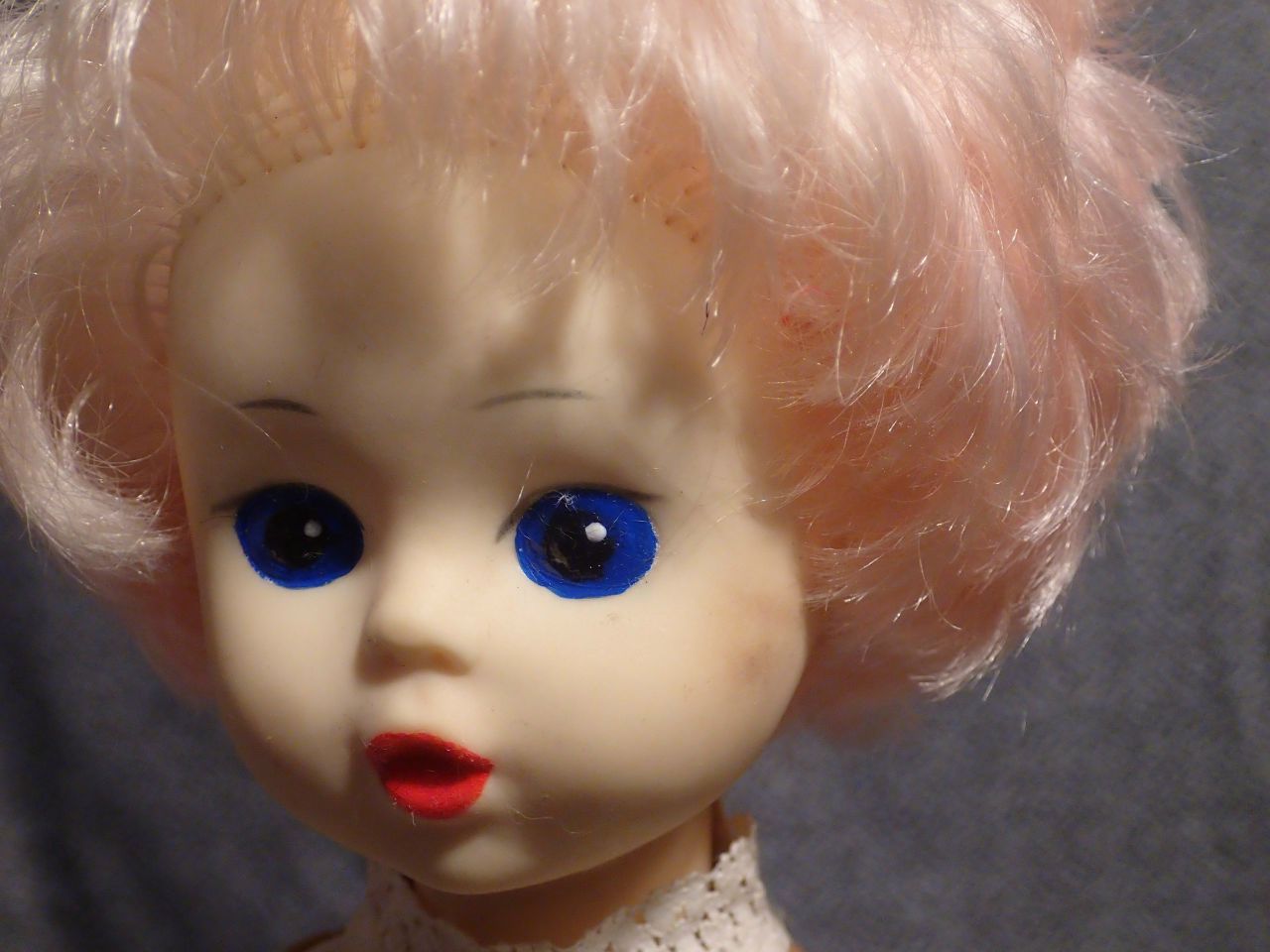 Куклу в фиолетовом удалось буквально спасти от медленной смерти. Не секрет, что старые игрушки — весьма нежный товар, требующий особых условий хранения. Но большинство продавцов-барахольщиков вообще не заморачиваются на данную тему. Если бы эту куклу не удалось заметить практически сразу — через 2-3 недели она бы представляла собой жалкое зрелище. Очевидно, в прошлой жизни ей практически не играли, она лежала где-то и поэтому хорошо сохранилась. И нам удалось уберечь её от убивания при перепродажах.
