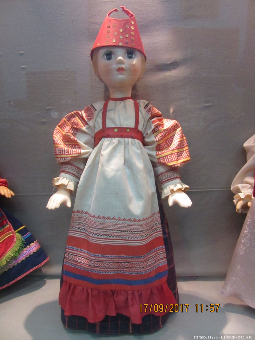 в костюме Рязанской губернии-в шушпане.Кукла в красном сарафане опознали, она