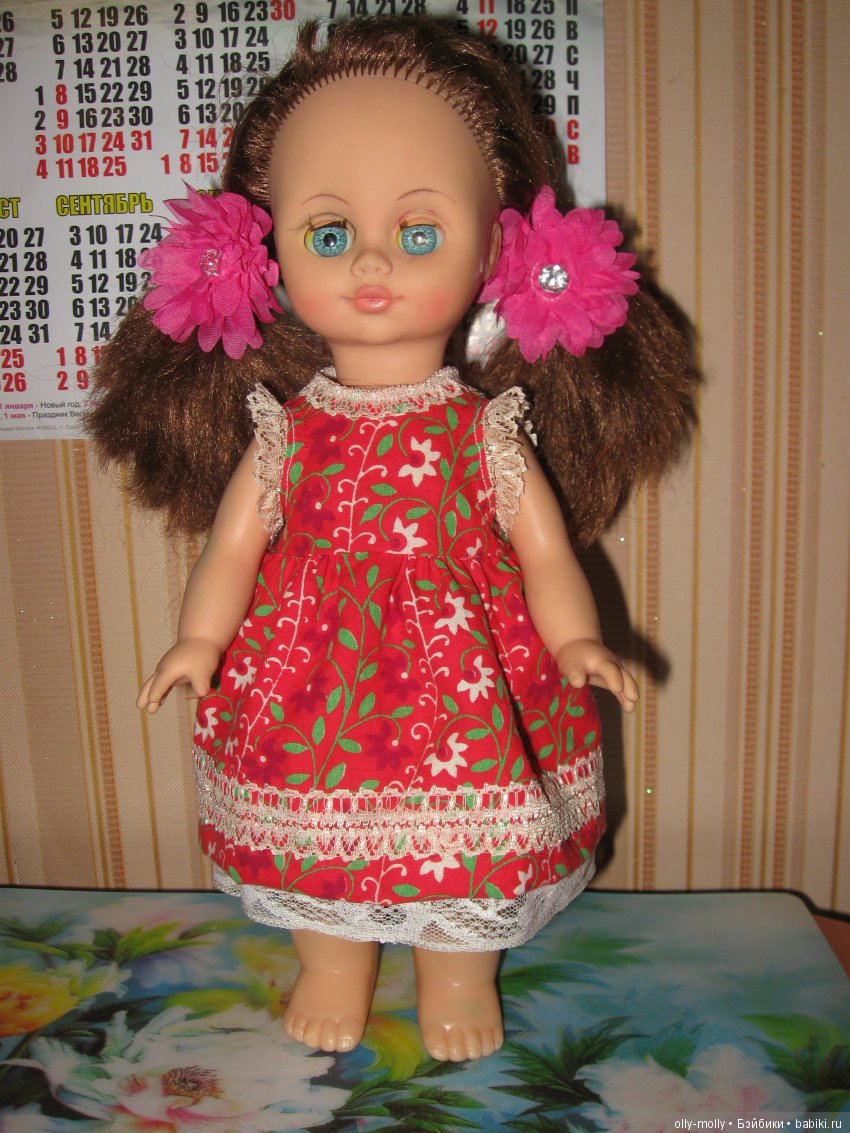 Следующей у меня в коллекции появилась вот такая куколка. Благода девочкам с бэйбиков, я знаю, что это Юля, горьковской фабрики игрушек (землячка). Мне даже скинули фото оригинальной куколки в платьице. Поэтому я сшила ей похожий наряд.