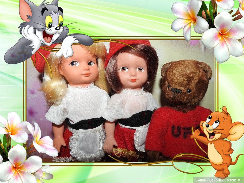 Маленький Миша очень славный, встречать его прибежали Красные Шапочки (куколки ГДР).