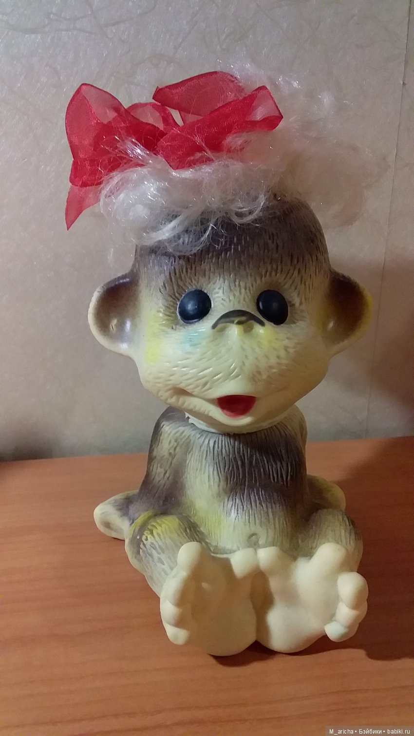 Фабрику производителя не знаю, подозреваю что «Кругозор». У нее еще сережка в ухе была, но к сожалению утеряна… Она очень похожа на мартышку из мультика про 38 попугаев, но я ее всегда звала Анфиской.