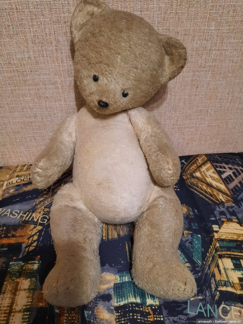 У меня тоже живет, мой родной, из 50-60 годов. Набит очень тщательно, туго соломой. Купила ему рычун оригинальный на мешке, т.к. его уже давно не рычал. Очень хочу шкурку почистить.