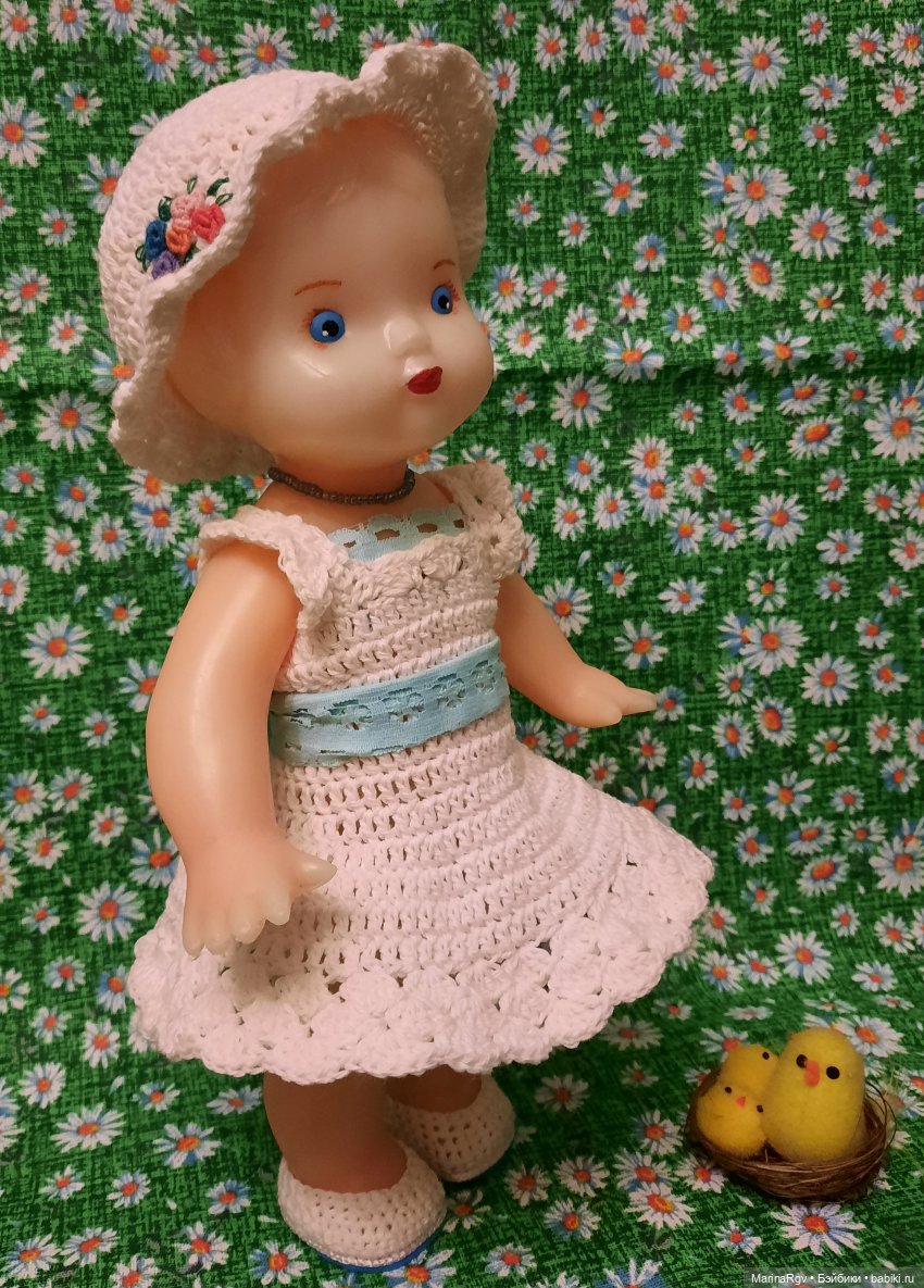 Марусе хочу платье другое, нашла вязальщицы, которая красиво именно на маленьких кукол вяжет, раздражает эта синяя клетка, уж не знаю почему))