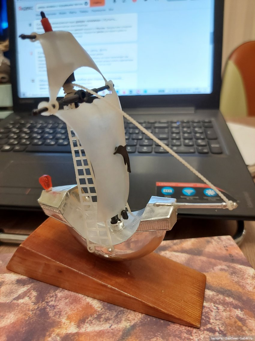 В детстве в серванте у родителей стоял парусник, кто-то подарил. Потом он потерялся. Возможно, просто упал и сломался. И вот я себе купила несколько лет назад почти такой! Тот был, правда, не серебряный, а белый, но все равно, он классный!!!