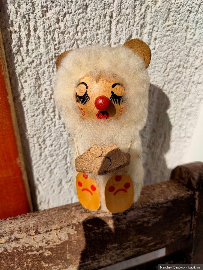 Ну а вот эта загадочная зверушка живет у меня почти 40 лет. Мне ее родители прислали из Австрии. Сверху была резиночка, она на этой резиночке качалась вверх-вниз и пишала. Резиночка рассохлась, но слабый писк остался. В общнм, радуюсь, что не потеряла ее за много переездов.