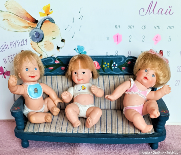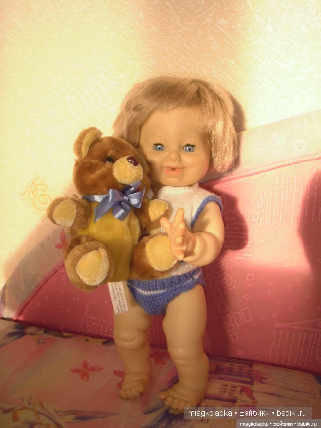 Маркировок нет. У меня есть две подобные куклы, писали, что это Gotz. И вот, со старшими братишкой и сестренкой. Мальчика у меня зовут Костик, и он обожаем. Девочек пока никак не зовут.