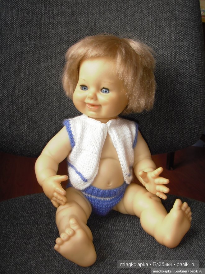 А у меня жил мальчик, классный, и состояние у него было полочное, неигранный, покупала у землячки, она гдр- коллекционер со стажем была, а переехали в дом, и мыши стали одолевать, и кошки не помогали и отрава, некоторым куклам что пониже на полках сидели, досталось, пальцы погрызли. Вот она и решила тогда распродать по быстрому свою коллекцию.