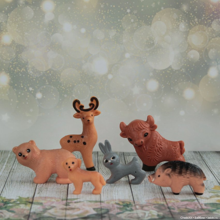 А я играл в детстве фигурками зверей Донецкой фабрики игрушек, они полностью цельнолитые резиновые, сами стоят, продавались как по штучке в пакетах так и в наборе где для каждой фигурки был выдавлен отсек её.