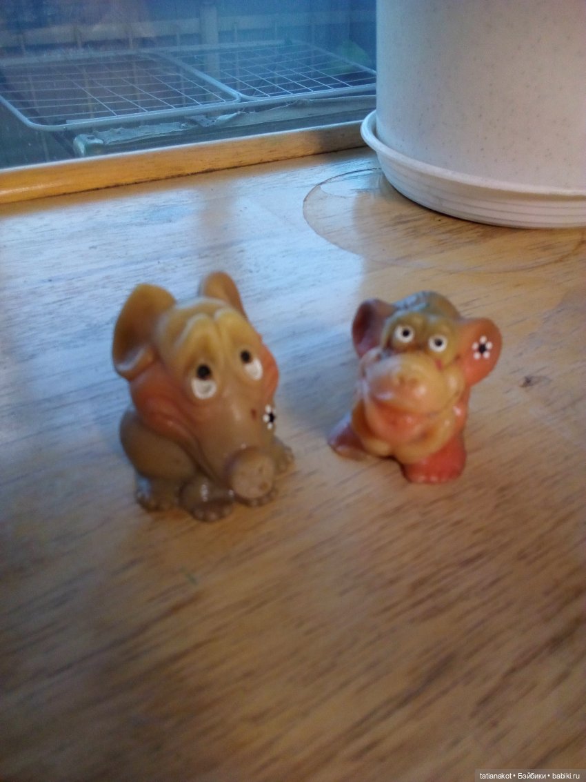 Никак не сфотографирую, у меня есть цельнолитые резиновые крошки зверики Донецкой фабрики игрушек, целая коробка, а остальныех я показывал, кьюпиков тоже есть правда чуть-чуть и один целлулоидный пупсик из каталога Пластических масс, а так из советских крошек и фигурок навскидку и не вспомню, кто ещё до пяти сантиметров.