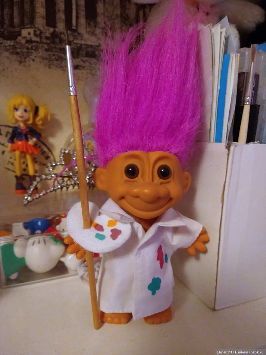 А теперь про троллей Russ. У меня их 5 штучек, 3 обычных, один мягкий и башкотряс ( которого я нашла на барахолке за 250 рублей) у троллей Russ бывают разнообразные образы как у Барби, но у меня пока есть пасхальный кролик, Дракула, и имбирная печенька. Мягкого троллика я нашла на авито тоже за 250 рублей, у него твёрдая голова и мягкое тельце. Хочу себе в коллекцию больших троллей Russ по 23 см и куколок lil miss.