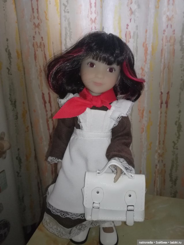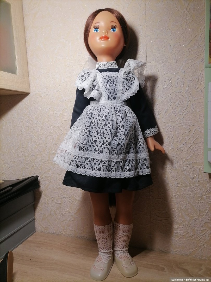 Первой покажу Светлану, это паричковая кукла Саратовской фабрики и попала она ко мне без платья, но почему-то увидела в ней сразу школьницу! Покупая наряд ей, захотелось фартук из гипюра, у меня такого не было😊.