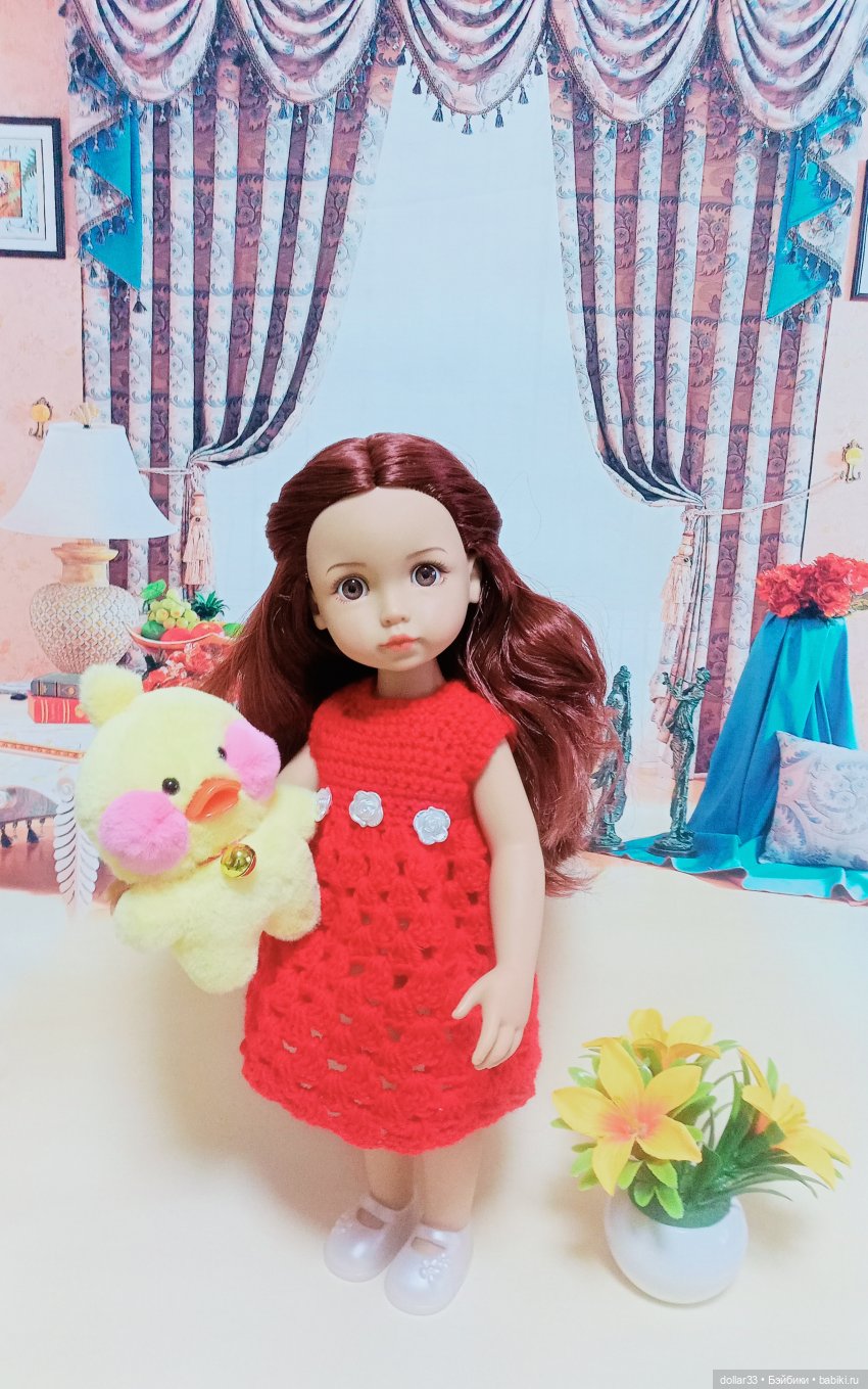 Она у меня единственная на сегодняшний момент кукла, которая не стоит в закрытом шкафу, а радует меня на открытой полочке и я с ней контактирую почти каждый день!!!