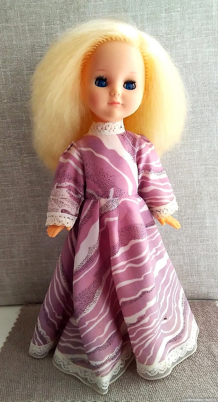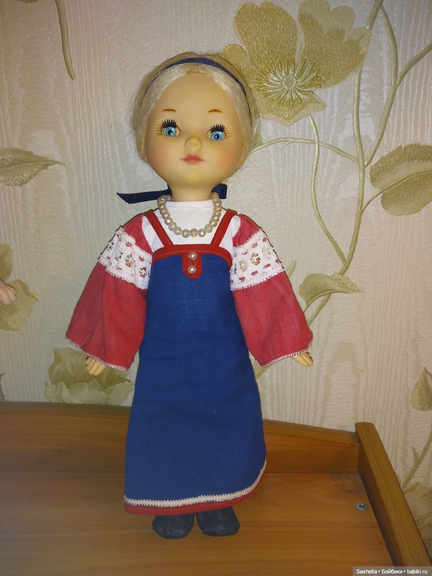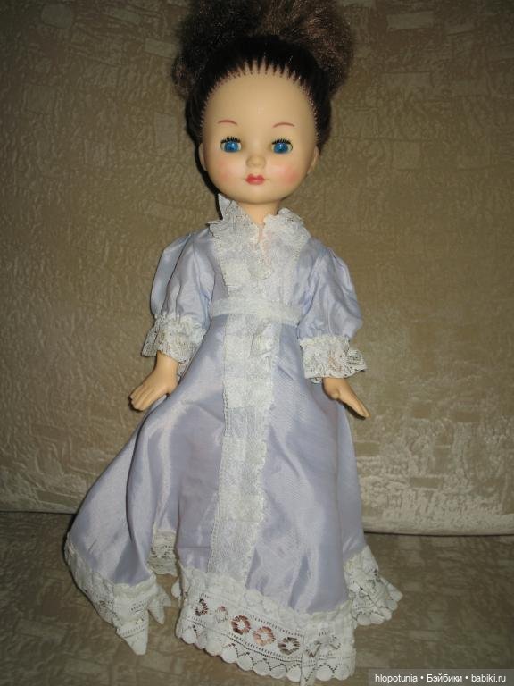 Есть кукла в длинном платье. Покрой платья отличается от платья свердловской Изабеллы: юбка и рукава шире, нет пелерины, зато имеется пояс из атласной ленты.