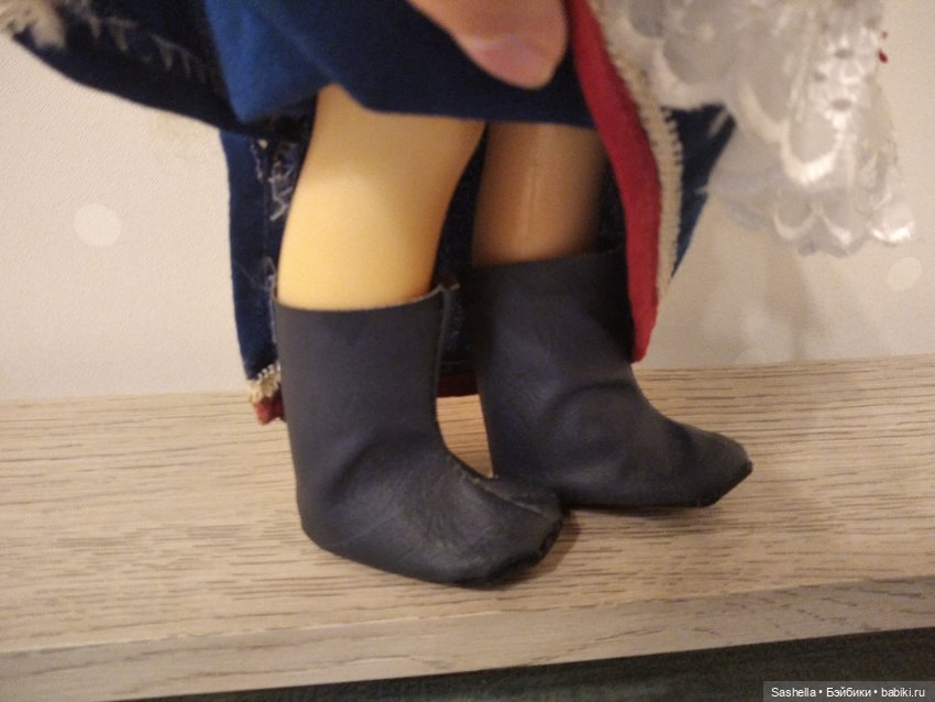 К сожалению, мои нахабинские красавицы живут пока босиком. Буду чрезвычайно рада, если кто-нибудь сможет показать оригинальную обувь этих кукол.