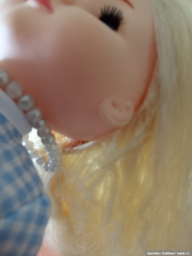 Я ее по дурости помыла «как следует»(((( это была моя первая кукла, почему-то я думала, что наши куклы и их макияж неубиваемые( поэтому румянец был почти стерт и губы бледноватые, позже я ее подкрасила сухой пастелью в родной тон, так сейчас и стоит. Дойдут руки может и резинку вошью в рукава, как и должно быть.