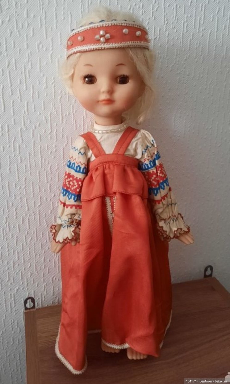 А теперь настало время поговорить о нарядах и именах кукол. Очень часто на всех советских фабриках игрушек куклы одного молда имели разные имена. На выбор имени часто влиял именно костюм.