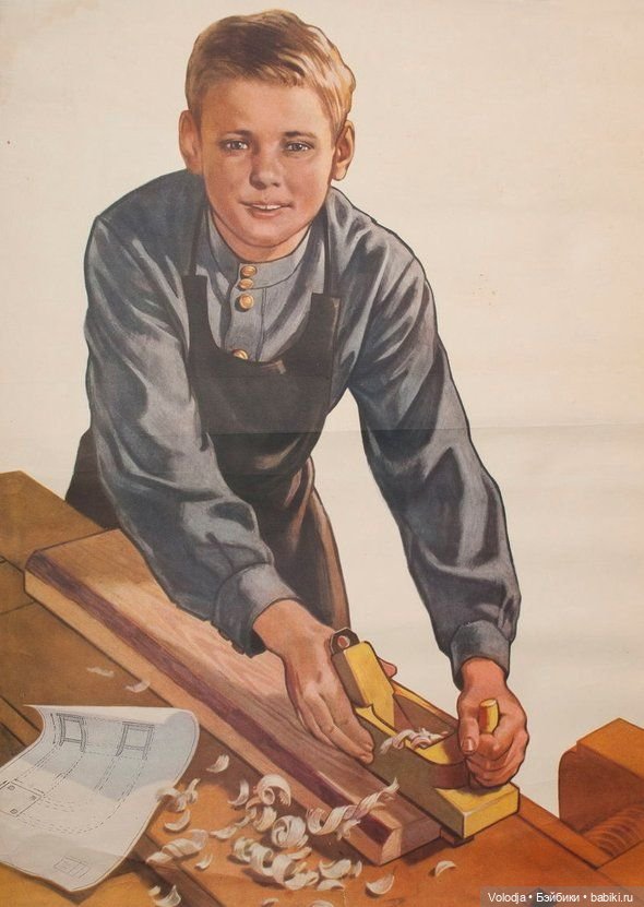 Он в рабочей одежде. Так одевались на заводе, ПТУ, уроках труда.