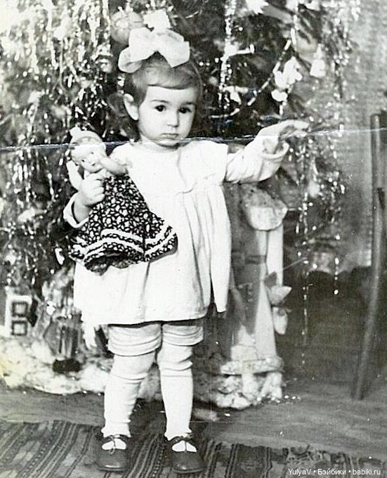 А у меня, когда я только родилась, был сморгоновский, как это сейчас выяснилось, пупс. В семье его звали Вовкой, но это не тот всем известный Вовка, а другая кукла. Не сохранился, к сожалению. Только фото с ним есть, где я грудная.