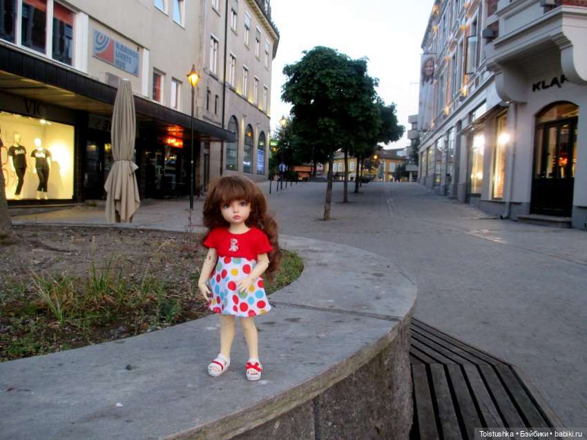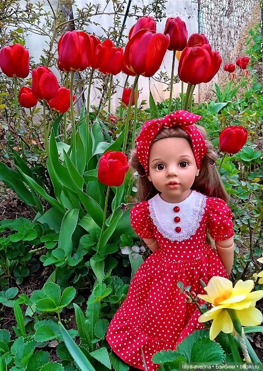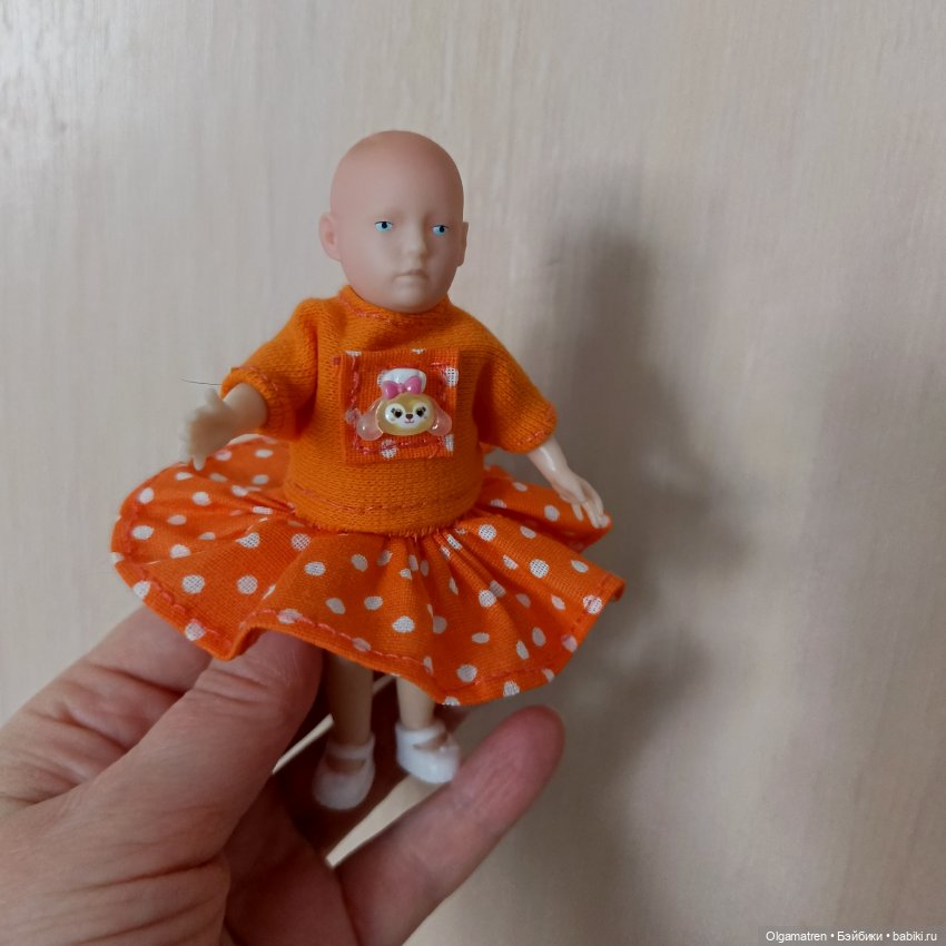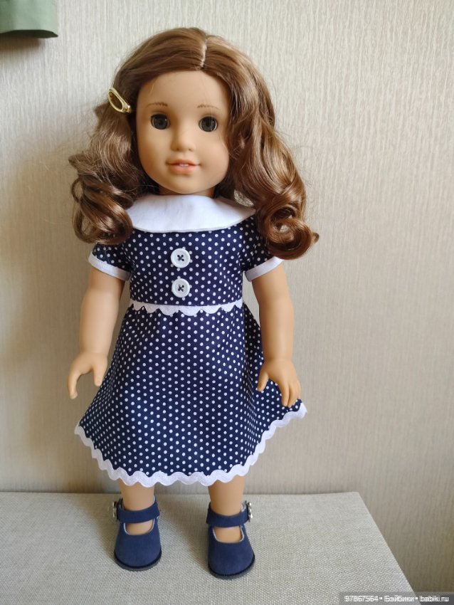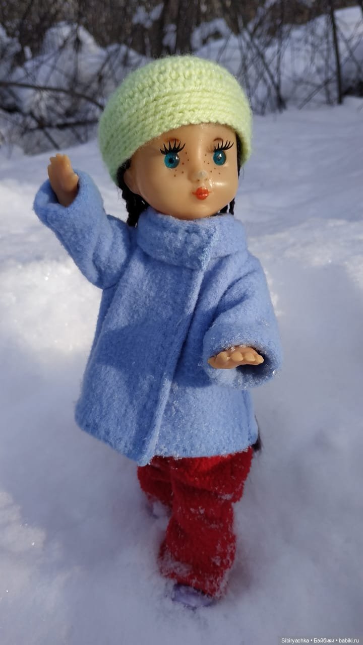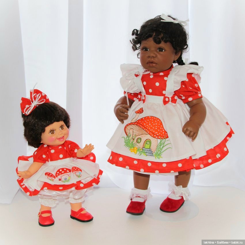 Анютка от Zanini Zambeli очень любит синий цвет. Белый горох на синем цвете, как звездочки на небе. А ее подружка Лялечка от Саратовской фабрики, наоборот, не фанатка пышностей, зато она заценила легкий песочник.