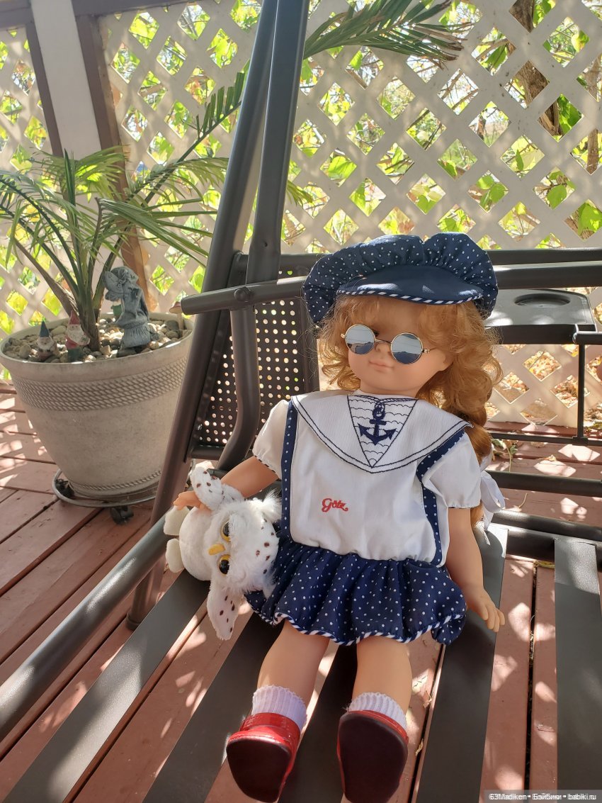 Моя Машенька (Ленигрушка). Она приехала в другом сарафанчике, но он уже выгорел от времени, и мы сшили другой.