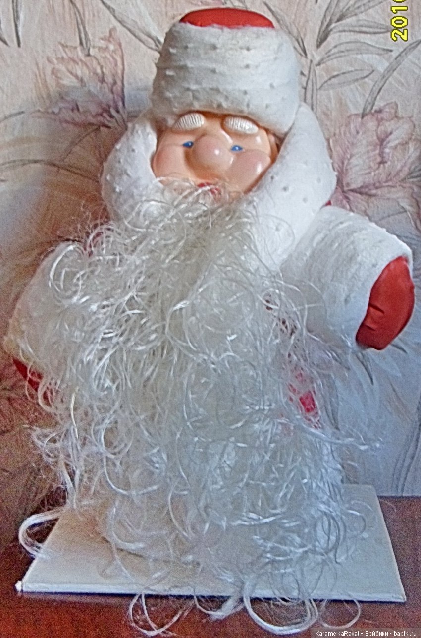 Борода от времени пожелтела, и лет двадцать пять назад была покрашена (мною) гуашью. Теперь я его и трогать-то боюсь, редкий всё же! Вот, правда, Снегурочку его родную кокнули, поэтому каждый год выбираем всем кукольным миром новую… иногда даже такую: