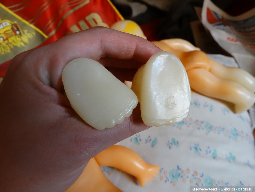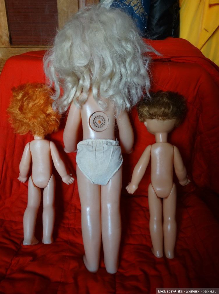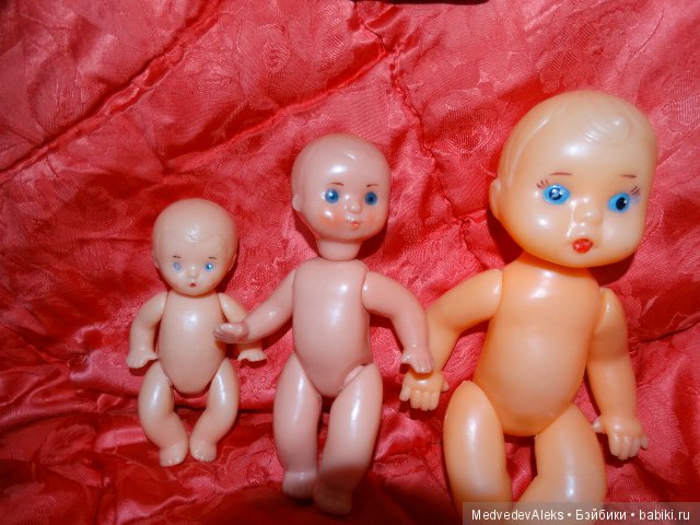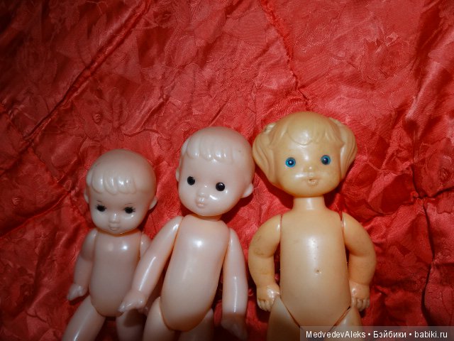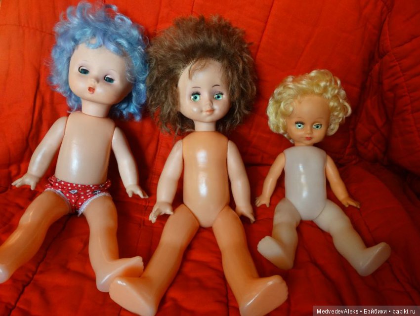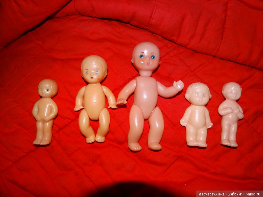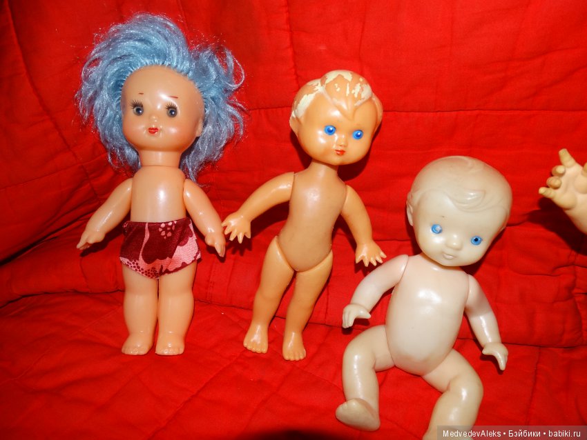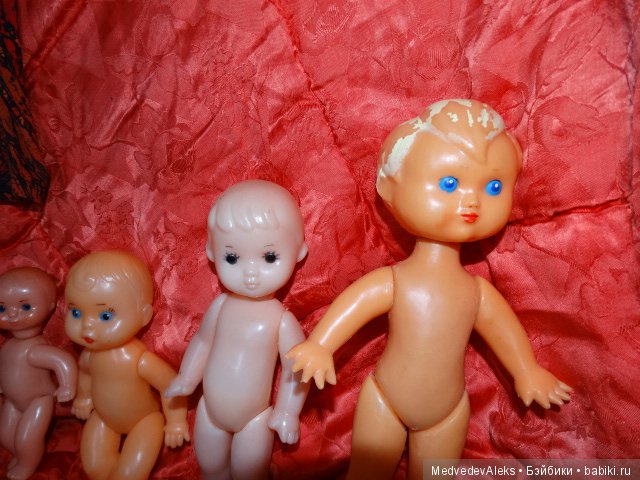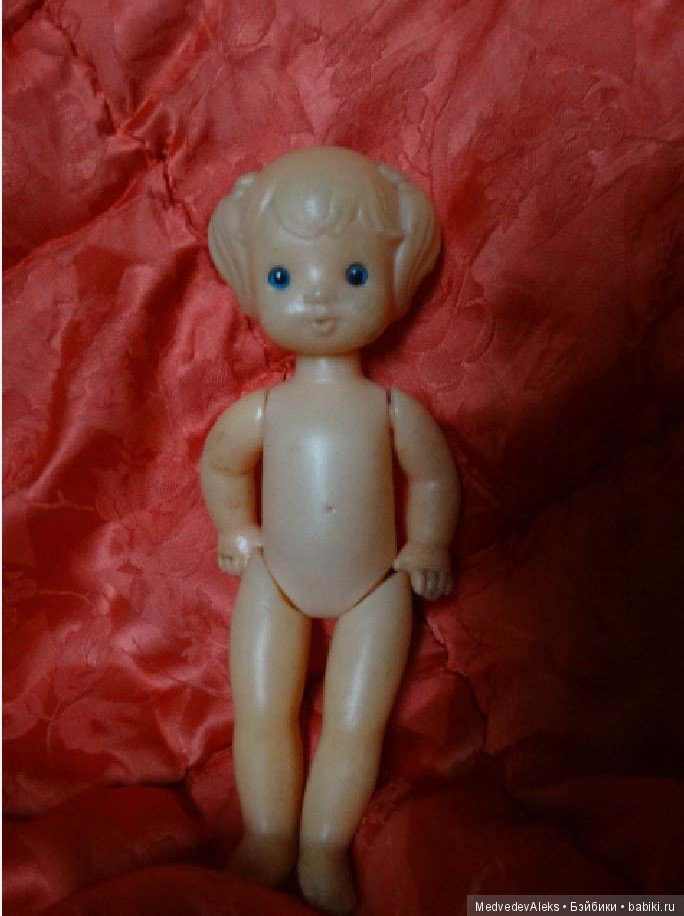 И ещё сразу подскажу! Сначала была целлулоид, колкий пластик, пластмасса. Позже появились резиновые головы и руги у кукол. Поэтому всё что полностью пластмассовое, раннее по выпуску, всего. Ну и естественно ценник чуть выше, если состояние идеальное, отличное, хорошее