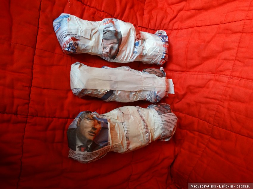 Пупсы обвёрнуты в материю, после 5-6 слоёв газет, зафиксированы клейкой бумагой. На почте заверну в целлофан каждую, уложу в коробке, плотно забью всё скомканной бумагой. Я думаю будет нормально, или ошибаюсь?